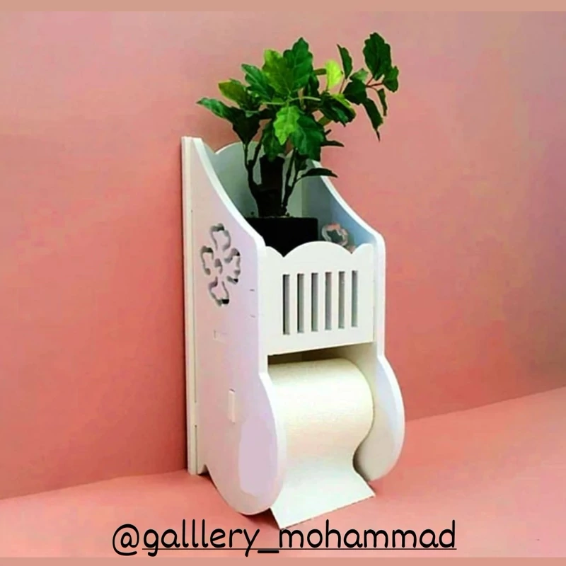 شلف نگهدارنده دستمال کاغذی با بدنهای از جنس PVC مدل باغچه کوچک نرده دار تزئین شده با تراشهای زیبا مقاوم در برابر رطوبت و آب قابل نصب بر روی دیوار و سطوح ایستاده شامل نگهدارنده دستمال و استند لوازم بهداشتی و دکوری مناسب استفاده در سرویسهای بهداشتی، آشپزخانه، حمام