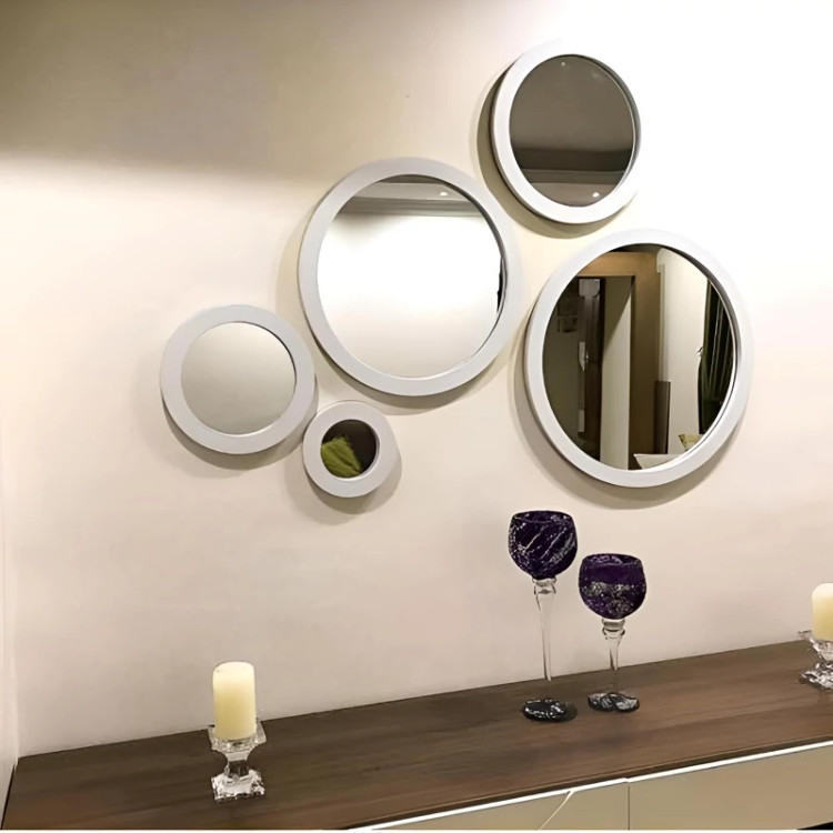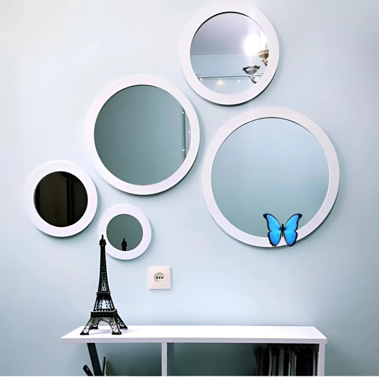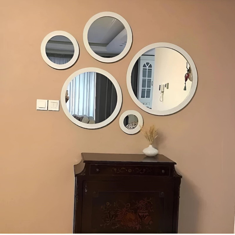 آینه ها در دکوراسیون داخلی معجزه میکنند از آنها به عنوان عناصر انرژی بخش در فضا یاد میشود و در فنگ شویی نیز آینه را نمادی از آب میدانند که به فضا آرامش گستردگی و تازگی میبخشد در عین حال باید به این نکته توجه داشت که استفاده مناسب از آینه در آرامش و بهبود حالات روانی افرادی که در آن محیط زندگی میکنند نیز نقش موثری را بازی می کند تلفیق نور و آینه میتواند حس متفاوتی را در فضای شما ایجاد کند و با کمترین هزینه تغییری شگرف در منزل شما بوجود آورد. آینه ی دکو گیوا (Decogiva) مدل -5 تکه یکی از انواع آینه های دکوراتیو است. آینه در واقع یک ست 5 عددی آینه دایره ای با قطرهای مختلف میباشد قاب هر آینه از جنس پی وی سی (pvc) با ضخامت 8 میل بوده که با رنگ سفید تولید میشود این محصول با توجه به تنوع چیدمان آینه ها برای همه سلیقه ها مناسب است. همچنین نصب آنها بسیار ساده میباشد. به طوریکه فقط کافی است تا جانمایی درستی داشته باشید و سپس با استفاده از میخهای کوچک و ظریف آینه ها را به شکل دلخواه روی دیوار بچینید.