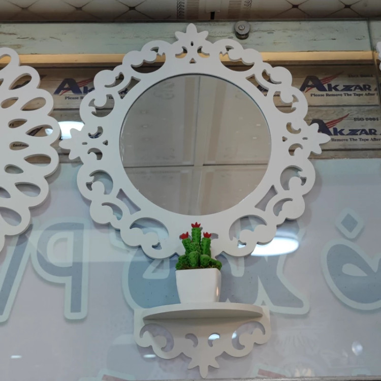 پنجمین طرح از آینه شلف های سایز کوچک طرح نیلوفر با طرحی شلوغ و پر از نقش نگار مناسب برای انواع سلیقه ها و انواع دکوراسیون