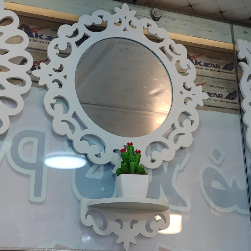 پنجمین طرح از آینه شلف های سایز کوچک طرح نیلوفر با طرحی شلوغ و پر از نقش نگار مناسب برای انواع سلیقه ها و انواع دکوراسیون