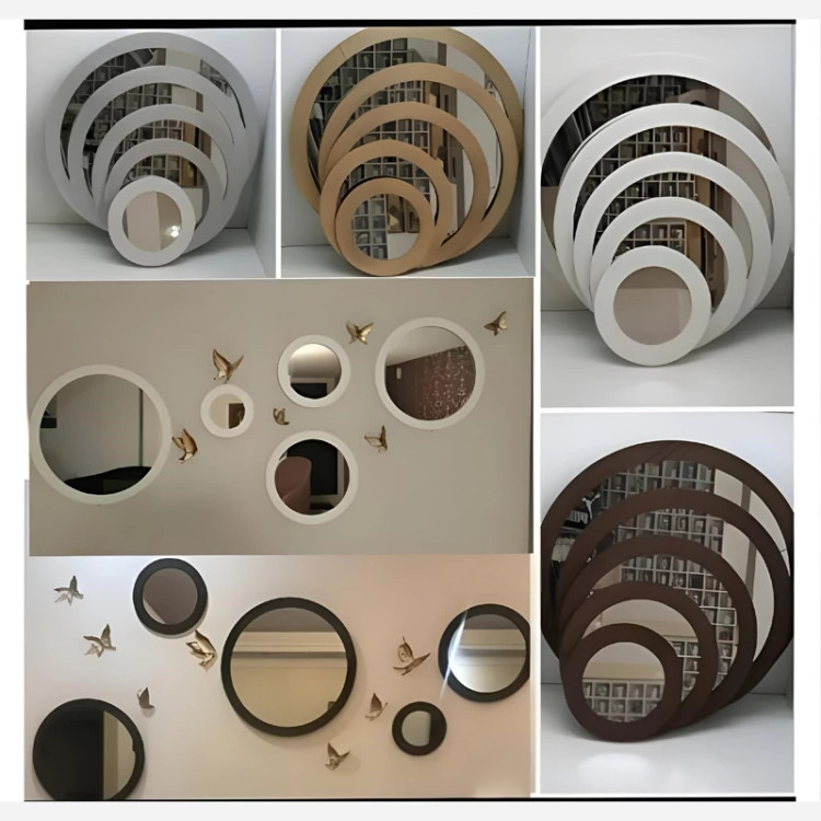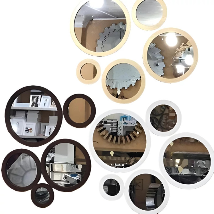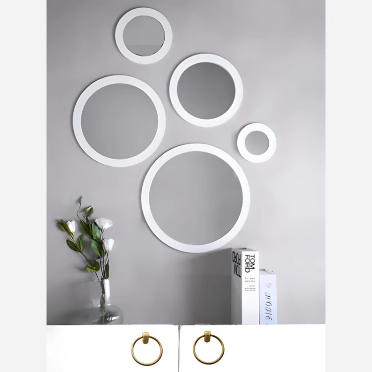 محصول خاص آینه گرد 5 تایی در رنگبندی مختلف 😍 مشکی ، سفید ، طوسی ، قهوهای ، طلایی ارسال فوری به سراسر ایران ✈️ با بسته بندی مرتب ✅ جنس همه رنگبندی ها از پی وی سی نانو بوده کاملا ضد آب و قابل شستشو ✅💯💦 مناسب برای انواع دکوراسیون ها و سلیقه ها بالای مبل ، بالای تخت، بالای تلویزیون ، توی راه رو ، بالای جاکفشی و دراور و .... تمامی محصولات موجود است میتونید ثبت سفارش کنید