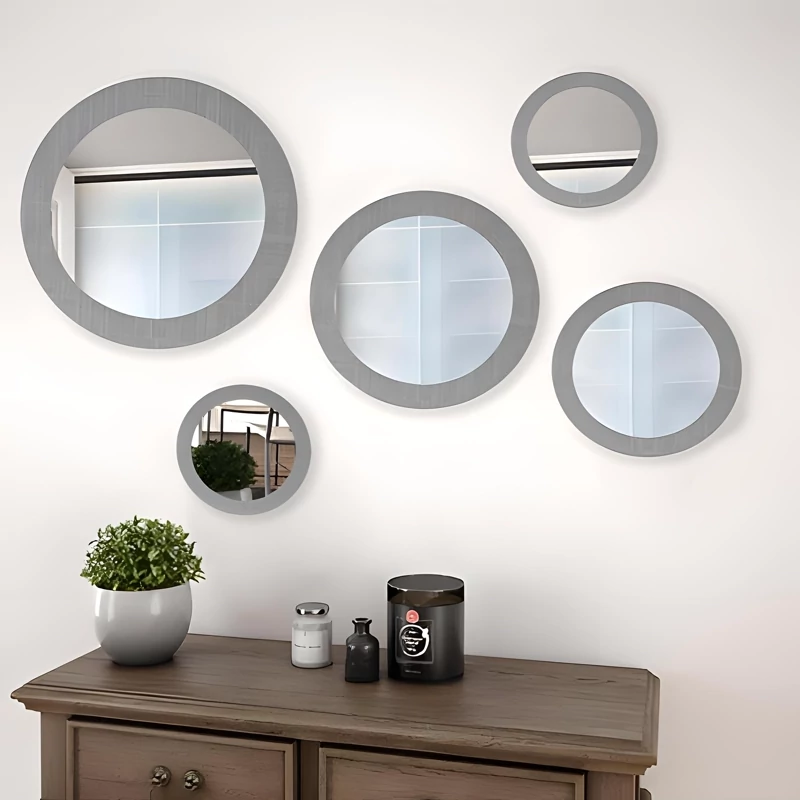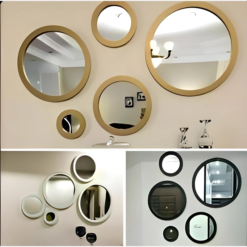 محصول خاص آینه گرد 5 تایی در رنگبندی مختلف 😍 مشکی ، سفید ، طوسی ، قهوهای ، طلایی ارسال فوری به سراسر ایران ✈️ با بسته بندی مرتب ✅ جنس همه رنگبندی ها از پی وی سی نانو بوده کاملا ضد آب و قابل شستشو ✅💯💦 مناسب برای انواع دکوراسیون ها و سلیقه ها بالای مبل ، بالای تخت، بالای تلویزیون ، توی راه رو ، بالای جاکفشی و دراور و .... تمامی محصولات موجود است میتونید ثبت سفارش کنید