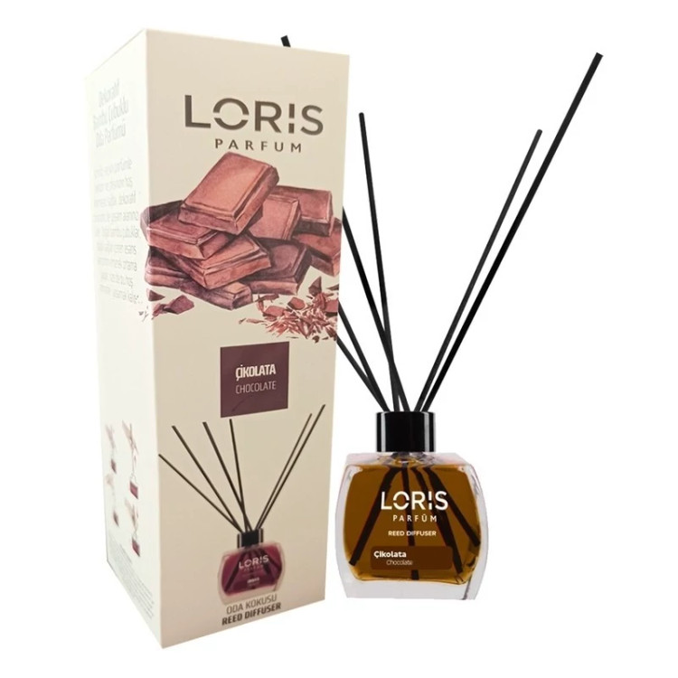 خوشبو کننده هوا لوریس Loris مدل چاکلت ( شکلات ) Chocolate، خوش بو و معطر بوده و بصورت مایع در ظرف شیشه ای زیبا، به همراه چند چوب نازک (نی چوبی) ارائه می گردد. این خوشبو کننده، محصول کشور ترکیه است و نام رایحه آن در کشور ترکیه Çikolata می باشد
