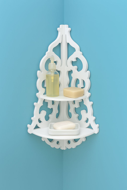 شلف دیواری کنجی دو طبقه گلدار ضدآب pvc