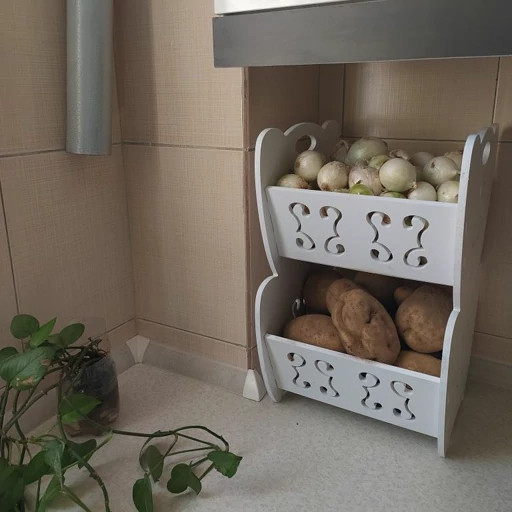 شلف دو طبقه نگهداری سیبزمینی و پیاز – طراحی زیبا و کاربردی برای آشپزخانههای مدرن