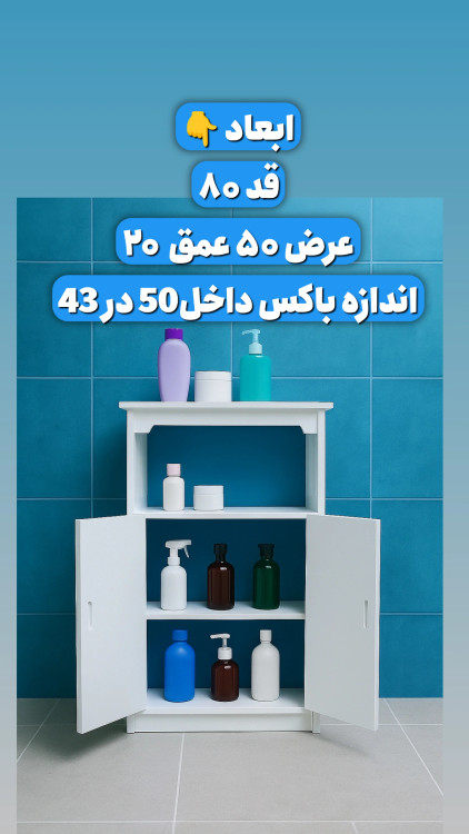 این شلف با ابعاد دقیق ارتفاع ۸۰ سانتیمتر، عرض ۵۰ سانتیمتر و عمق ۲۰ سانتیمتر، برای فضاهای محدود مانند سرویسهای بهداشتی کوچک طراحی شده است. عرض کم آن باعث میشود بهراحتی بین توالت فرنگی و ایرانی قرار گیرد، بدون اینکه مانع حرکت یا دسترسی شود.