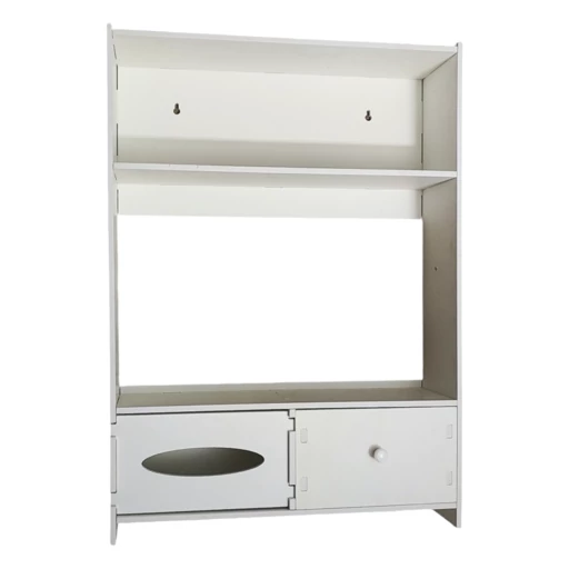 این شلف دیواری با طراحی ساده و کاربردی، گزینهای ایدهآل برای نظمدهی به وسایل روزمره در فضاهای کوچک و مدرن است. رنگ سفید خنثی و فرم مینیمال آن بهراحتی با انواع دکوراسیون هماهنگ میشود و جلوهای تمیز و آرامشبخش به محیط میبخشد.