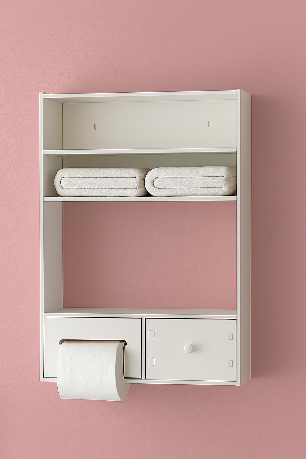 این شلف دیواری با طراحی ساده و خطوط تمیز، کاملاً با سبکهای مدرن و مینیمال هماهنگ است. رنگ سفید مات آن باعث میشود در هر فضایی—چه حمام، چه آشپزخانه یا حتی دفتر کار—بهراحتی با دکوراسیون موجود ترکیب شود. استفاده از پسزمینه صورتی در تصویر نیز نشان میدهد که این شلف قابلیت هماهنگی با رنگهای گرم و لطیف را دارد.