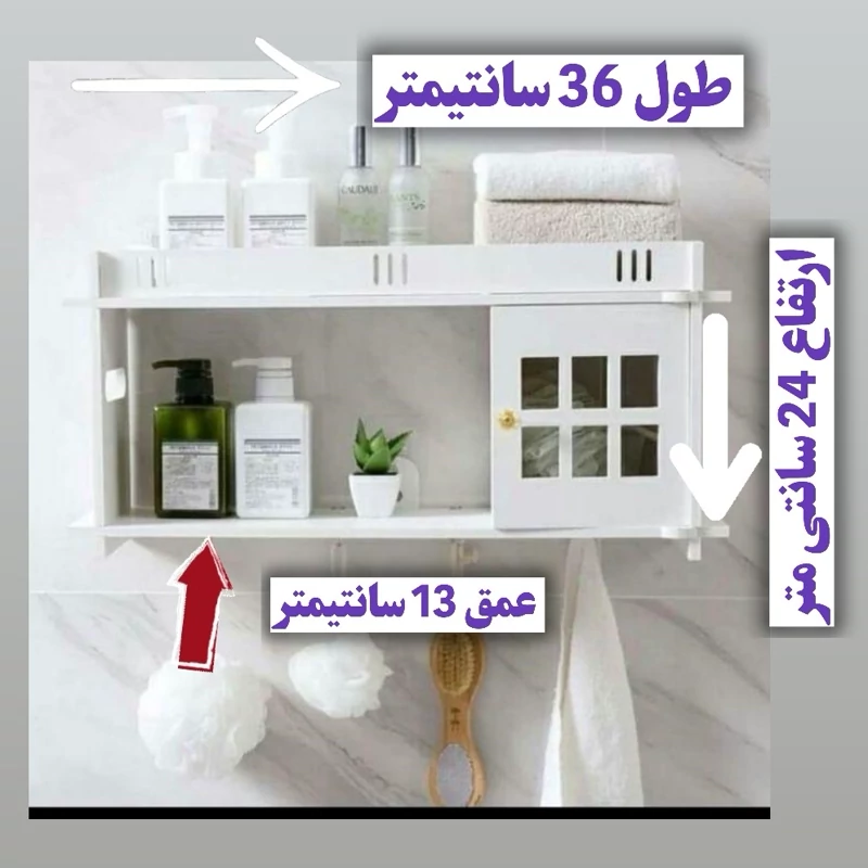 یک محصول بسیار کاربردی دارای آویز و یک باکس برای جای دستمال رولی و بالای آن جای شامپو مناسب حمام و توالت کاملا ضدآب و رطوبت