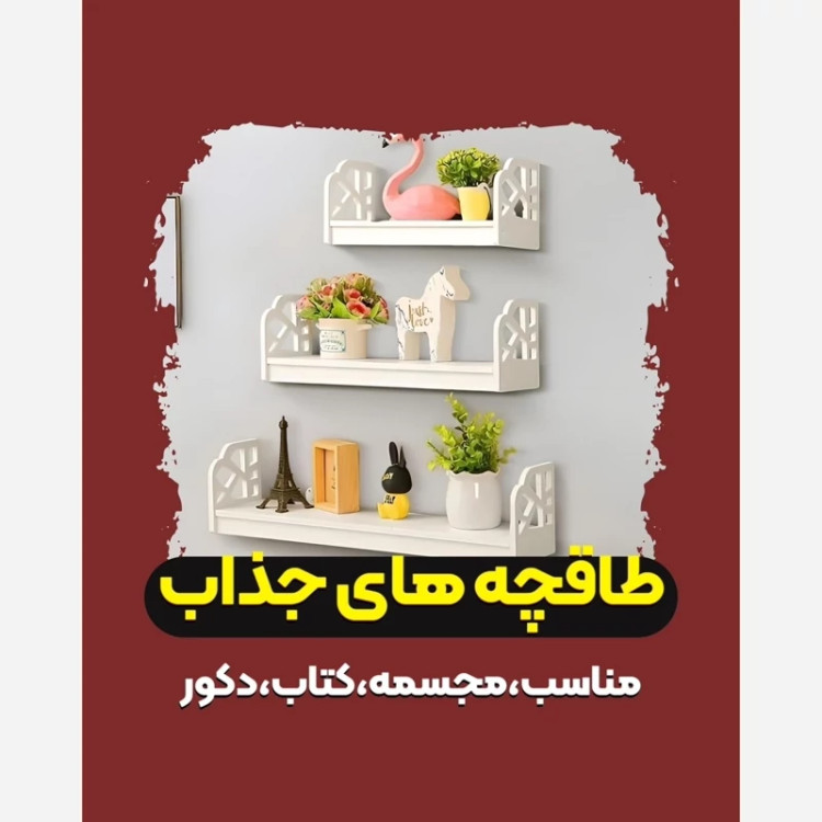 شلف دیواری طاقچه سه سایز بغل دار دکوری