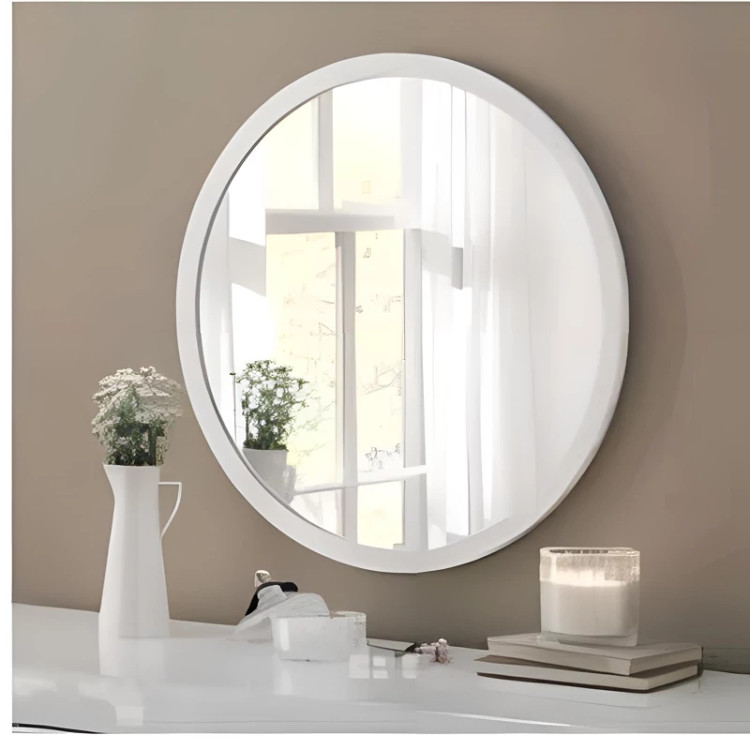⭐آینه گرد سفید ساده مناسب همه جا و همه مکان ها 👌 ست کردن با کنسول و میز آرایش ، مناسب توی اتاق خواب ، حمام ، سرویس بهداشتی و .... قاب آینه از جنس پی وی سی نانو درجه یک ضد آب و شیشه آینه کیفیت عالی و بدون موج است ✨