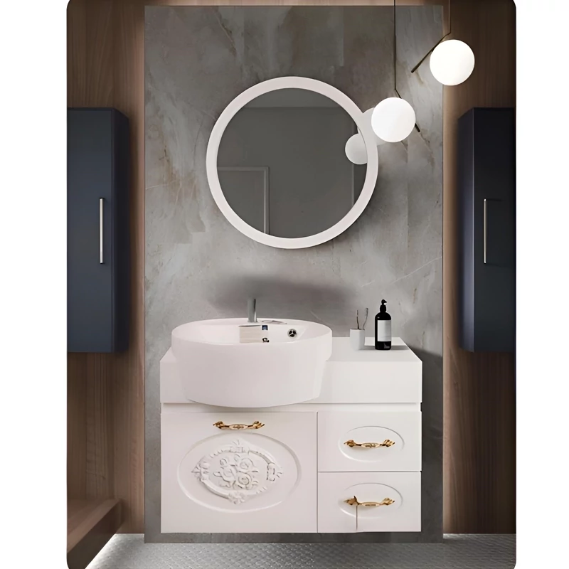 آینه شلف گرد تکی سایز بزرگ 50 سانتی رنگ سفید